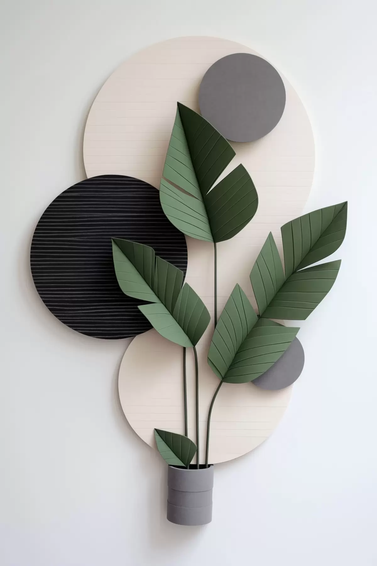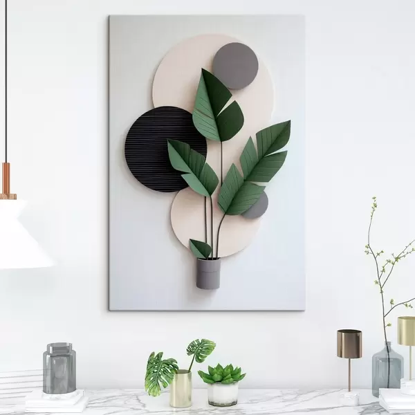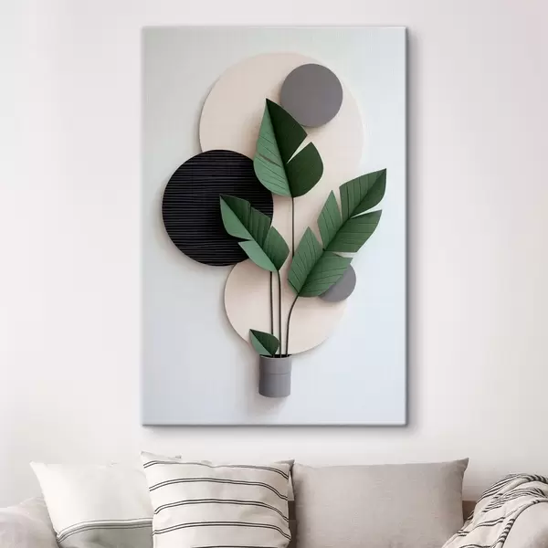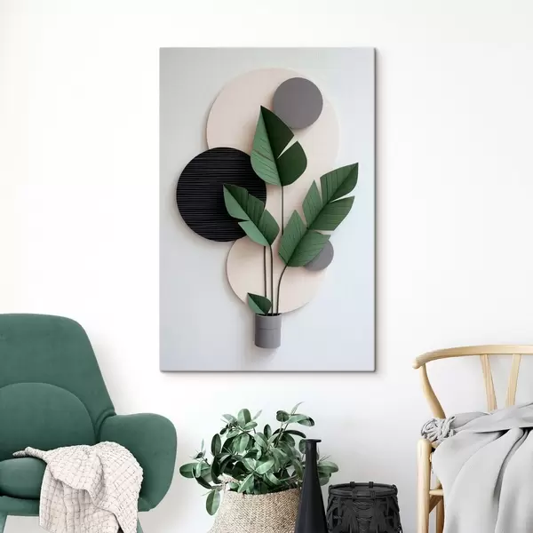 Wandbilder Minimalistisches Layout mit geometrischen Kreisen und grünen Blättern Art. s48607