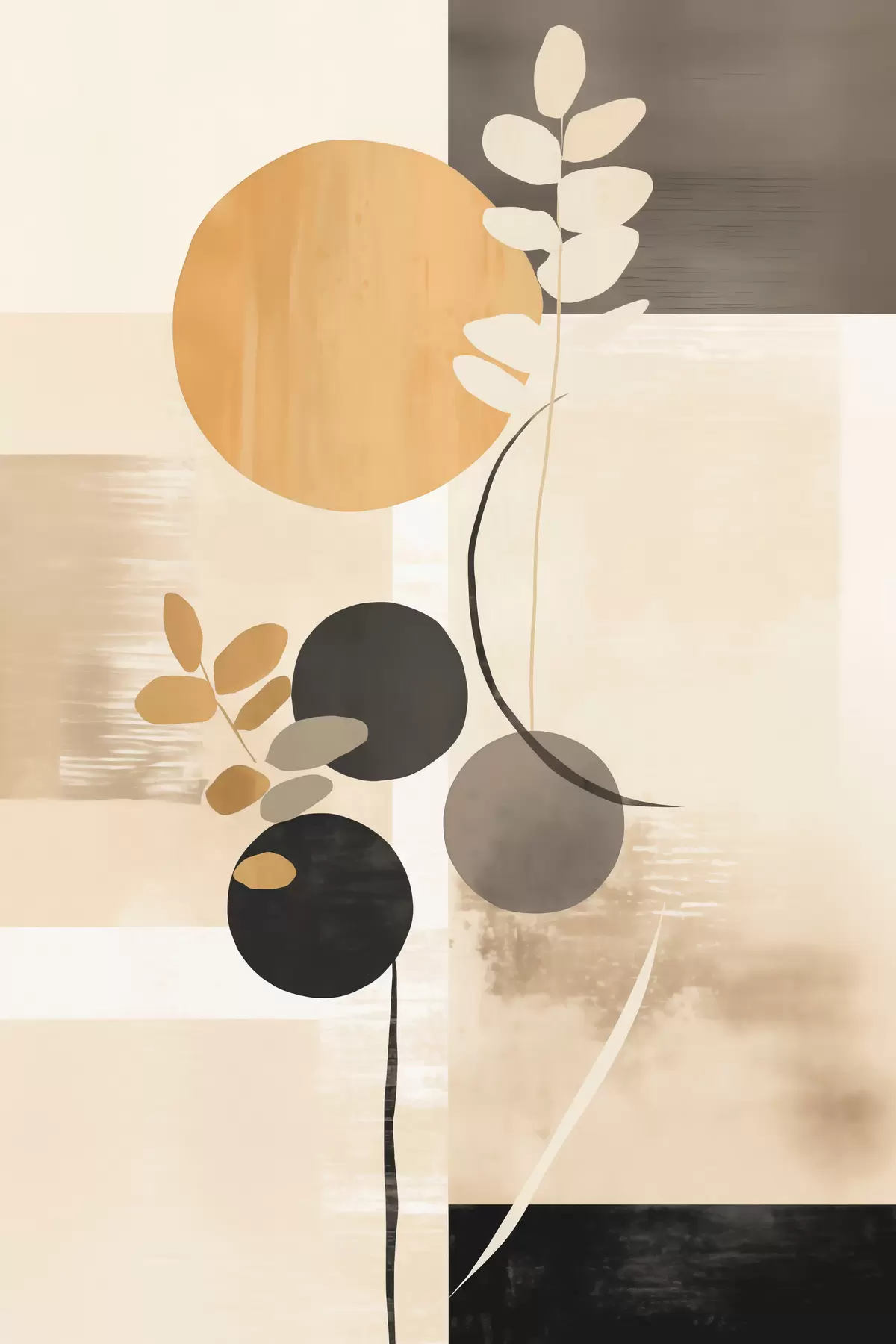 Wandbilder Eine Abstraktion mit Blättern und Kreisen Art. s48612
