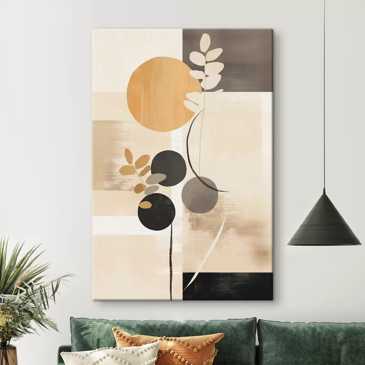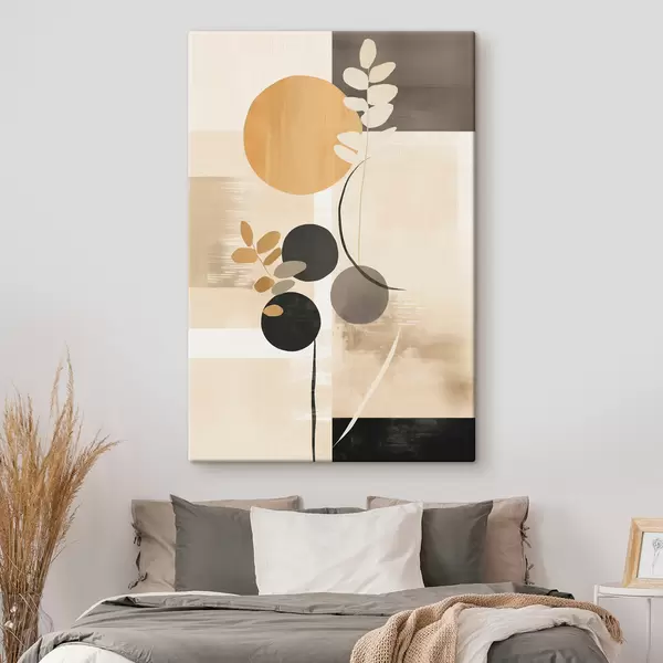 Wandbilder Eine Abstraktion mit Blättern und Kreisen s48612