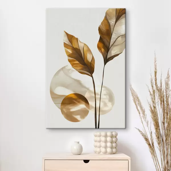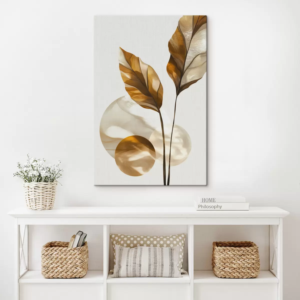 Wandbilder Eine abstrakte Komposition aus Blättern und Kreisen s48615