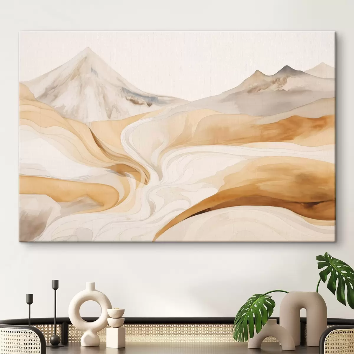 Wandbilder Stilisierte Landschaft mit Bergen und fließenden Linien Art. s48626