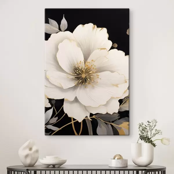 Wandbilder Weiße Blumen auf dunklem Hintergrund Art. s48633