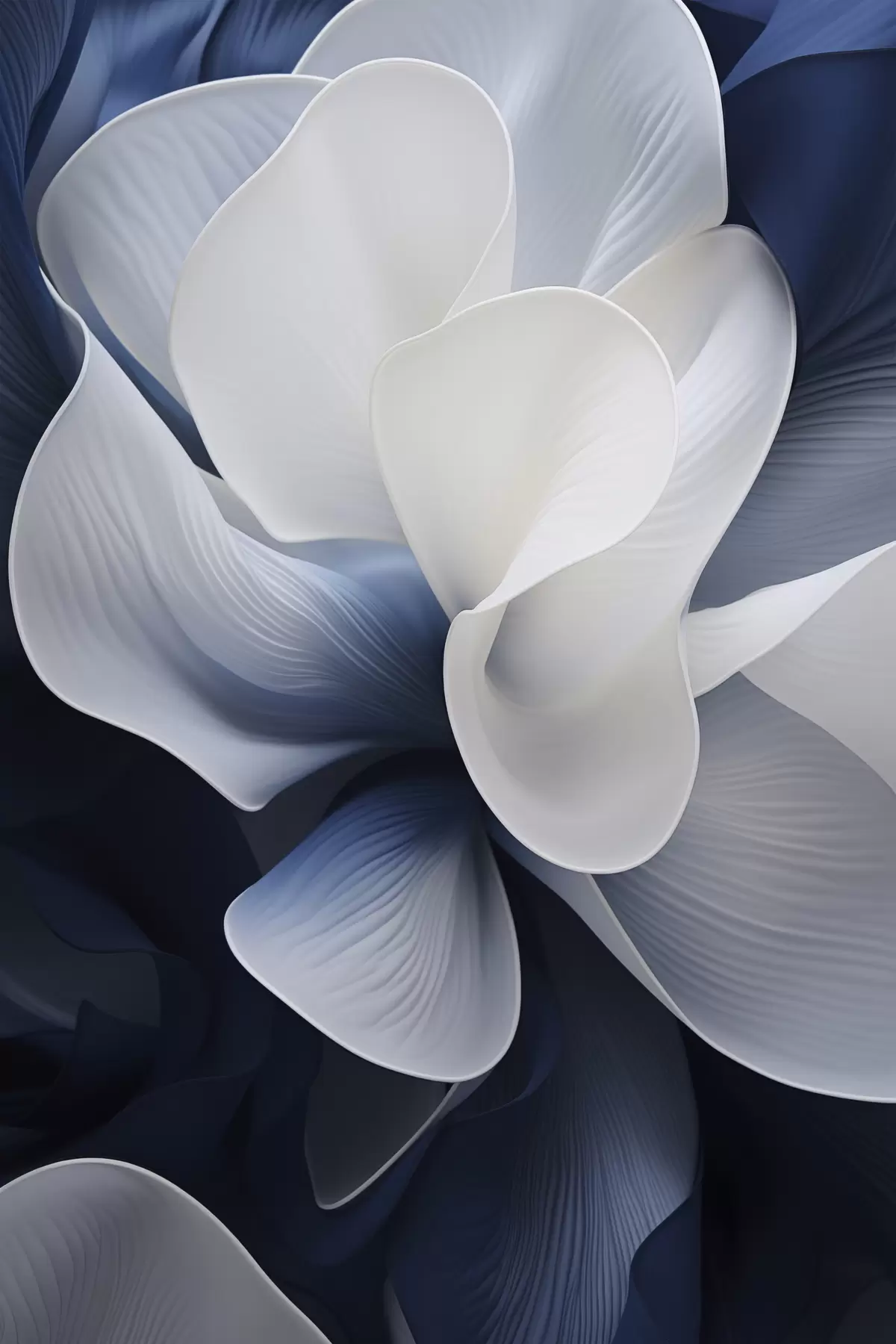 Wandbilder Abstrakte blau-weiße Blütenblätter vor dunklem Hintergrund s48732