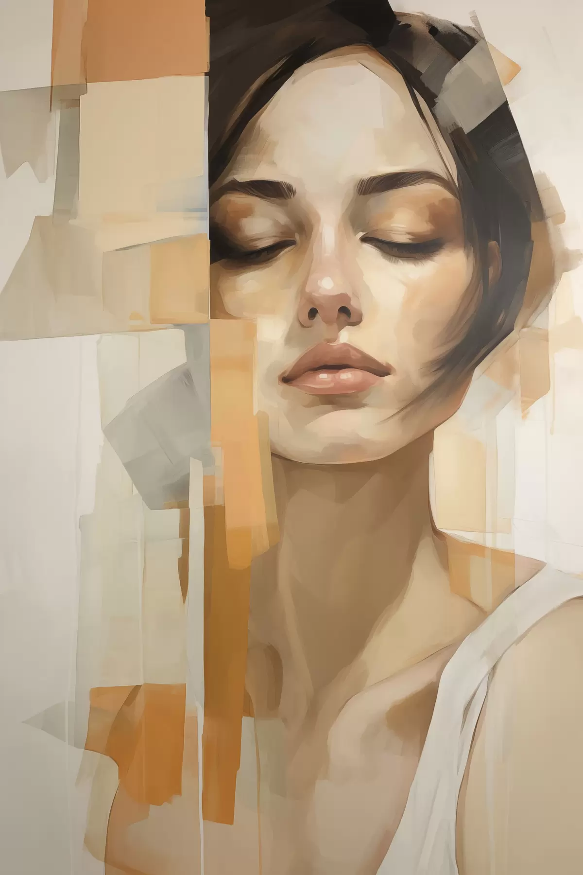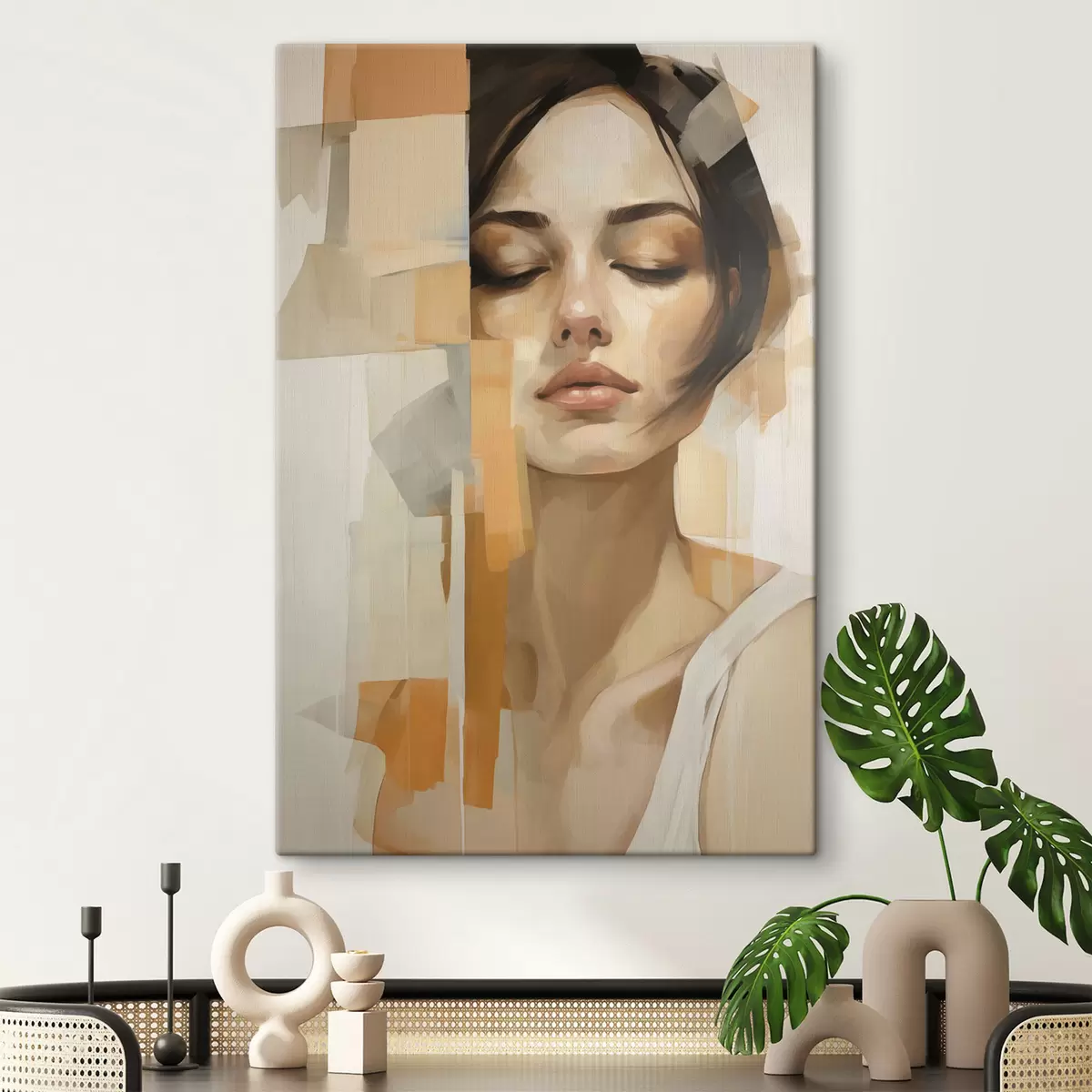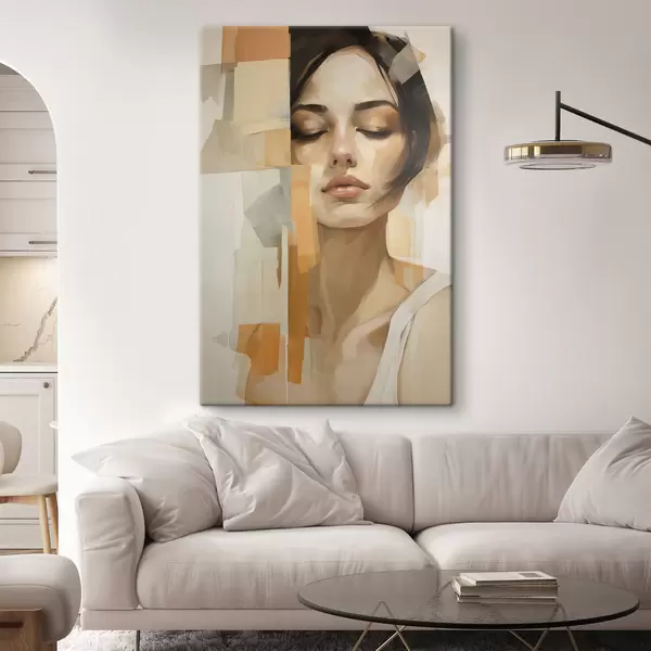Wandbilder Abstraktes Frauenporträt mit orangefarbenen und beigen Formen s48736