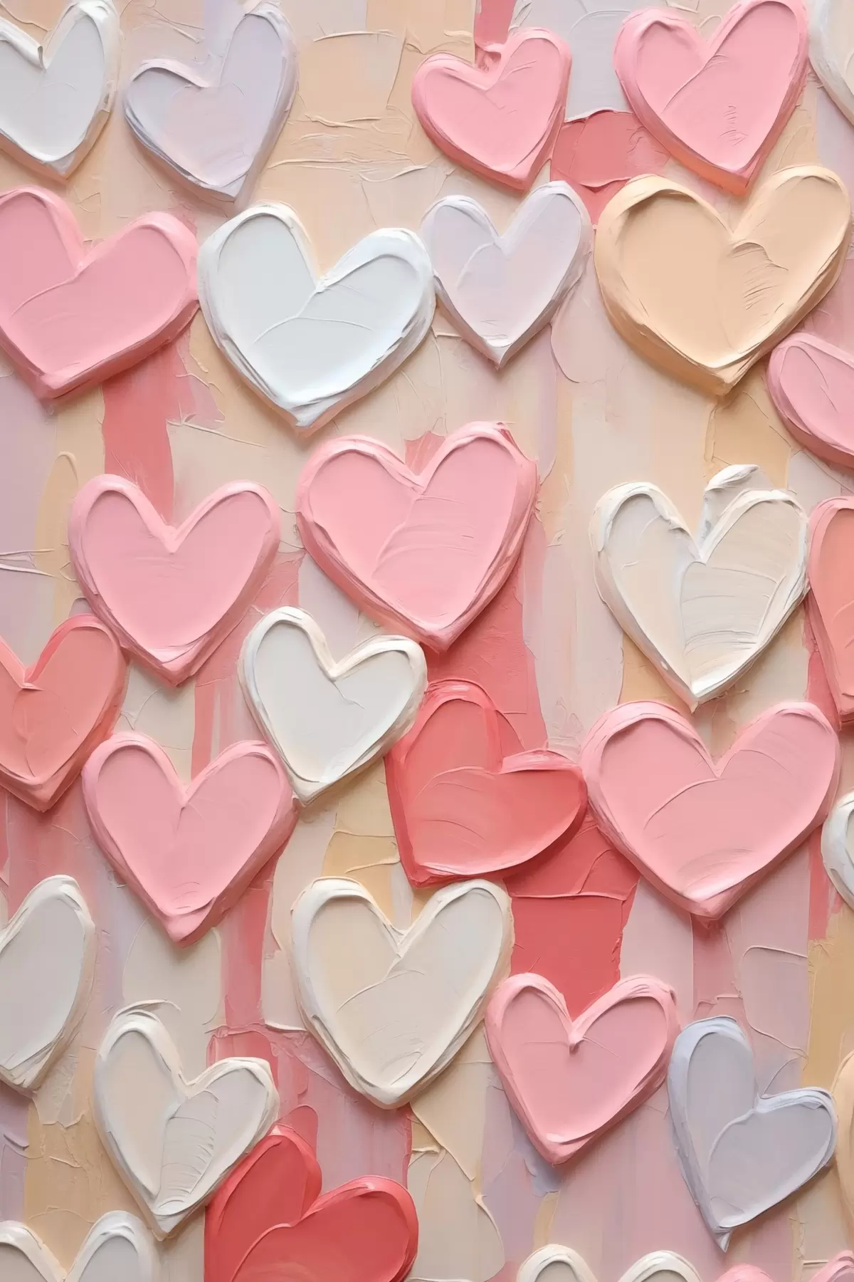 Wandbilder Herzen in verschiedenen Pfirsich- und Rosatönen in einem strukturierten, gemalten Stil s48751