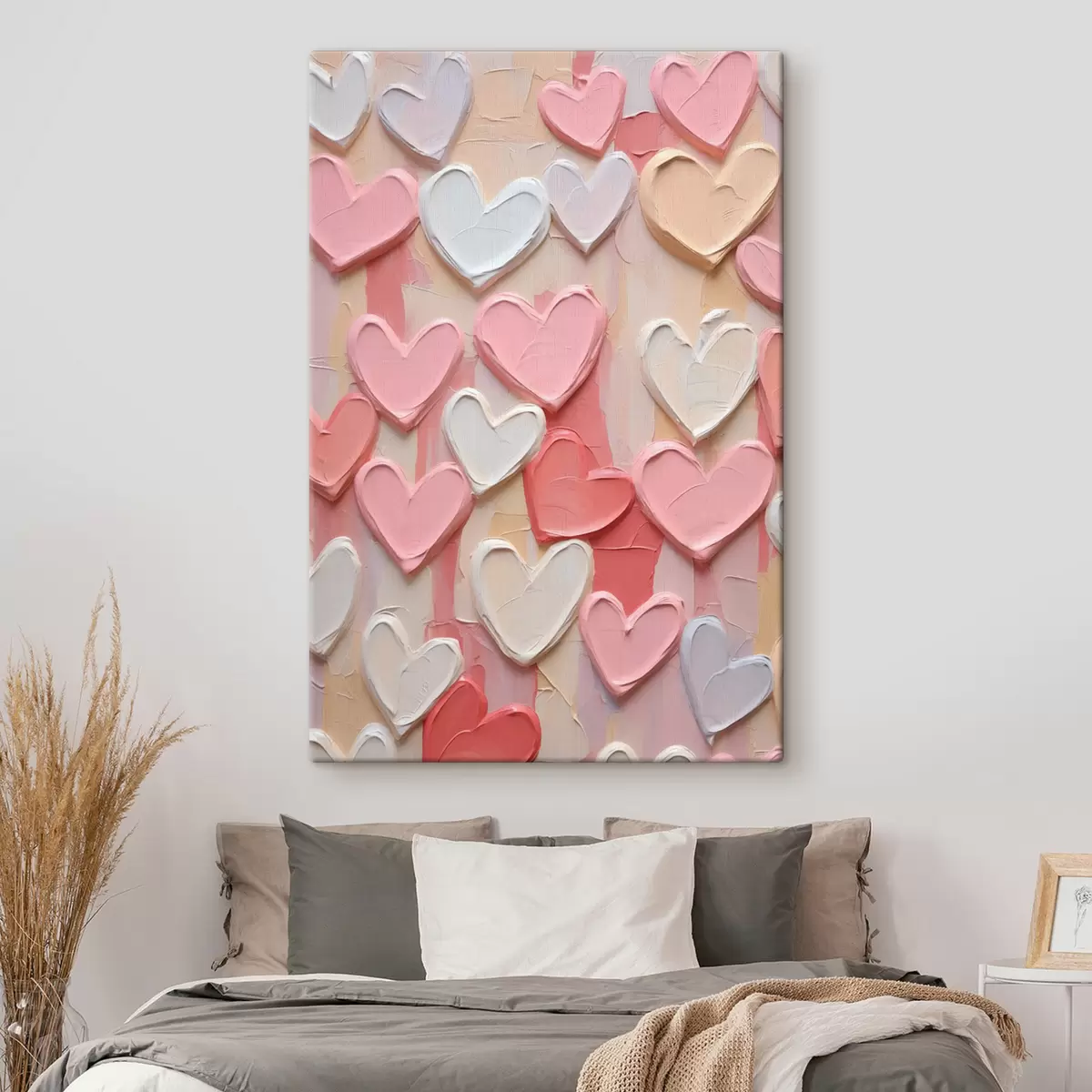 Wandbilder Herzen in verschiedenen Pfirsich- und Rosatönen in einem strukturierten, gemalten Stil Art. s48751