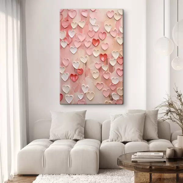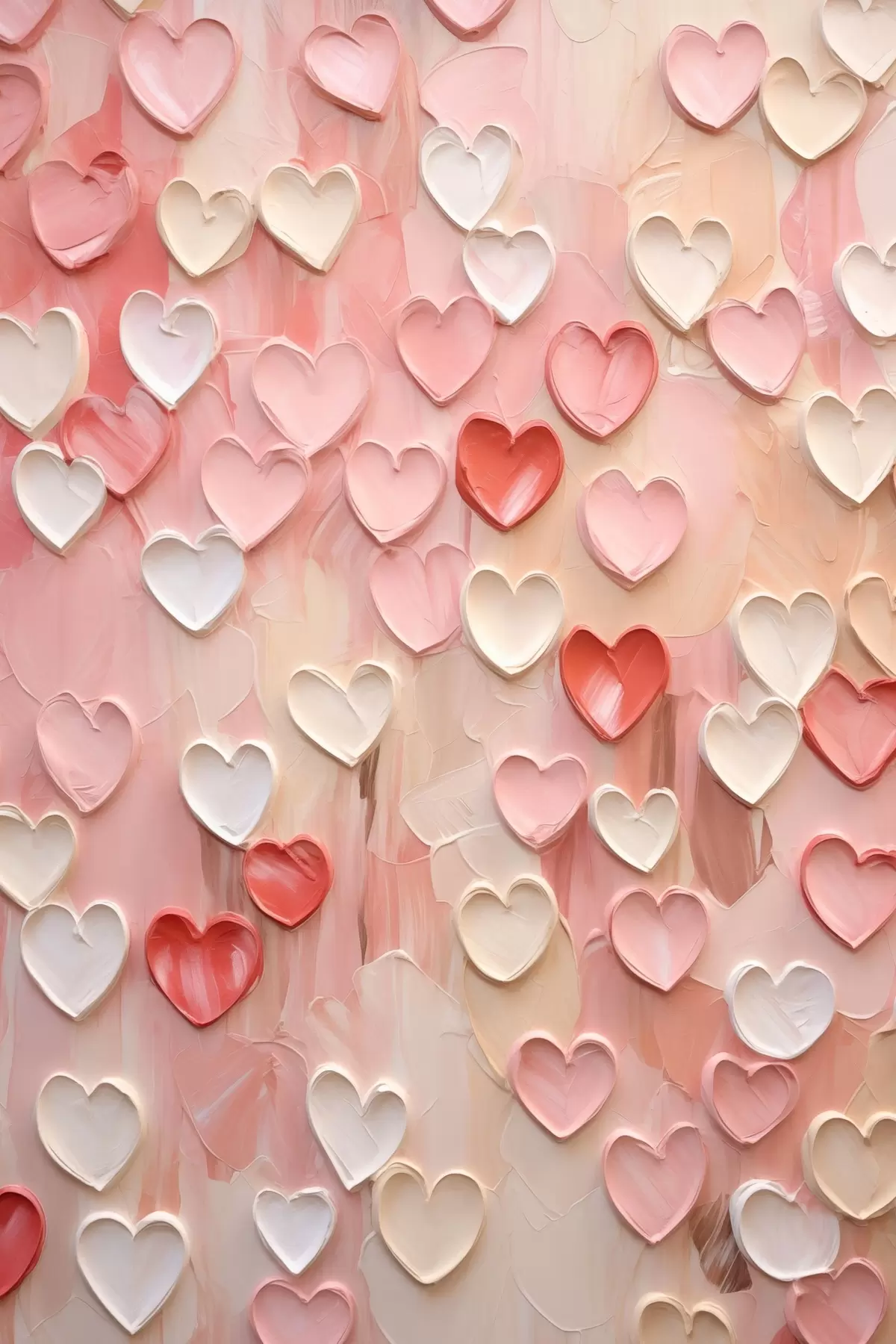 Wandbilder Herzen in verschiedenen Pfirsich- und Rosatönen in einem strukturierten, gemalten Stil s48752