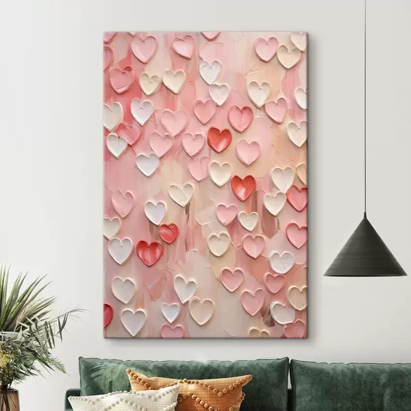 Wandbilder Herzen in verschiedenen Pfirsich- und Rosatönen in einem strukturierten, gemalten Stil Art. s48752