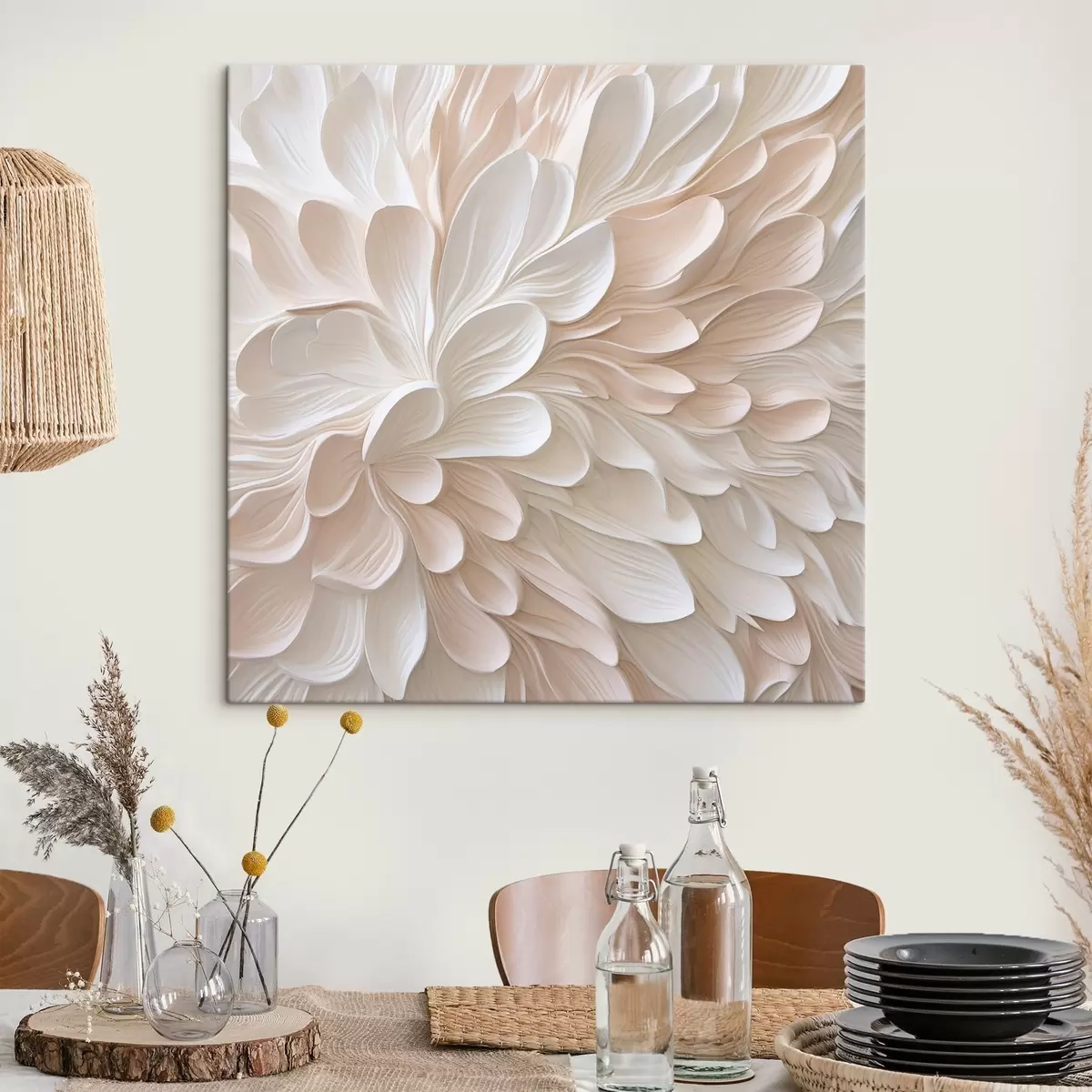 Drei Materialtypen stehen zur Verfügung: Economic Canvas - ein dichtes und haltbares Material für den Digitaldruck, identisch mit Malerleinwand, wasserfeste Oberfläche, realistische Wiedergabe von Details, mittelkörniges Material. Premium Canvas - die Textur ähnelt der einer Malerleinwand (verwobene kleine Fäden). Weiche, detaillierte Wiedergabe des Bildes auf einer matten Oberfläche. Eco-Premium - hochwertiges Gewebe aus 100% Baumwolle. Dank der natürlichen Baumwollfasern ist das Material langlebig und verschleißfest. Hervorragende Farbwiedergabe und Detailtreue.