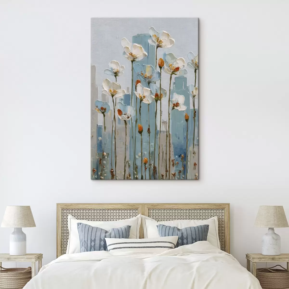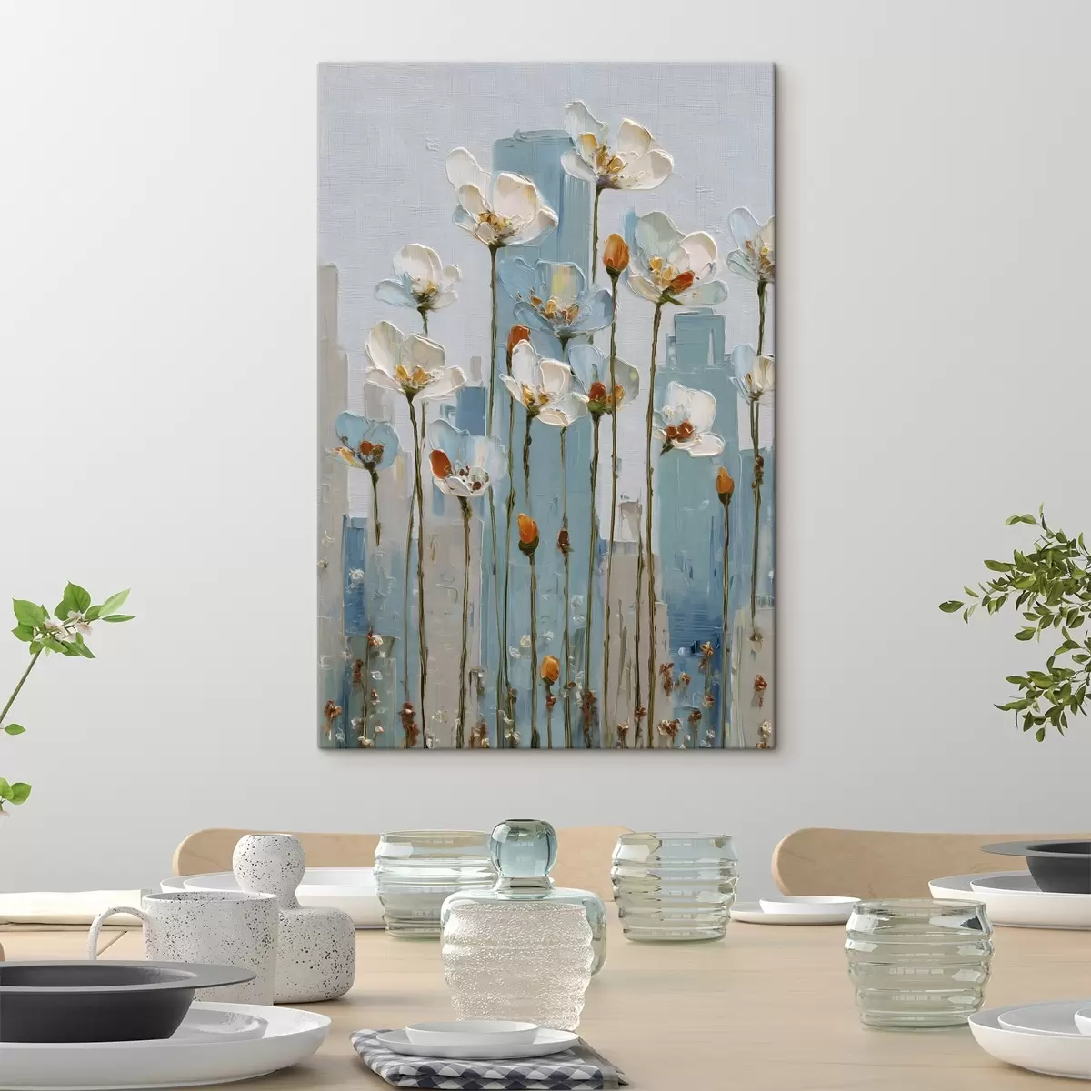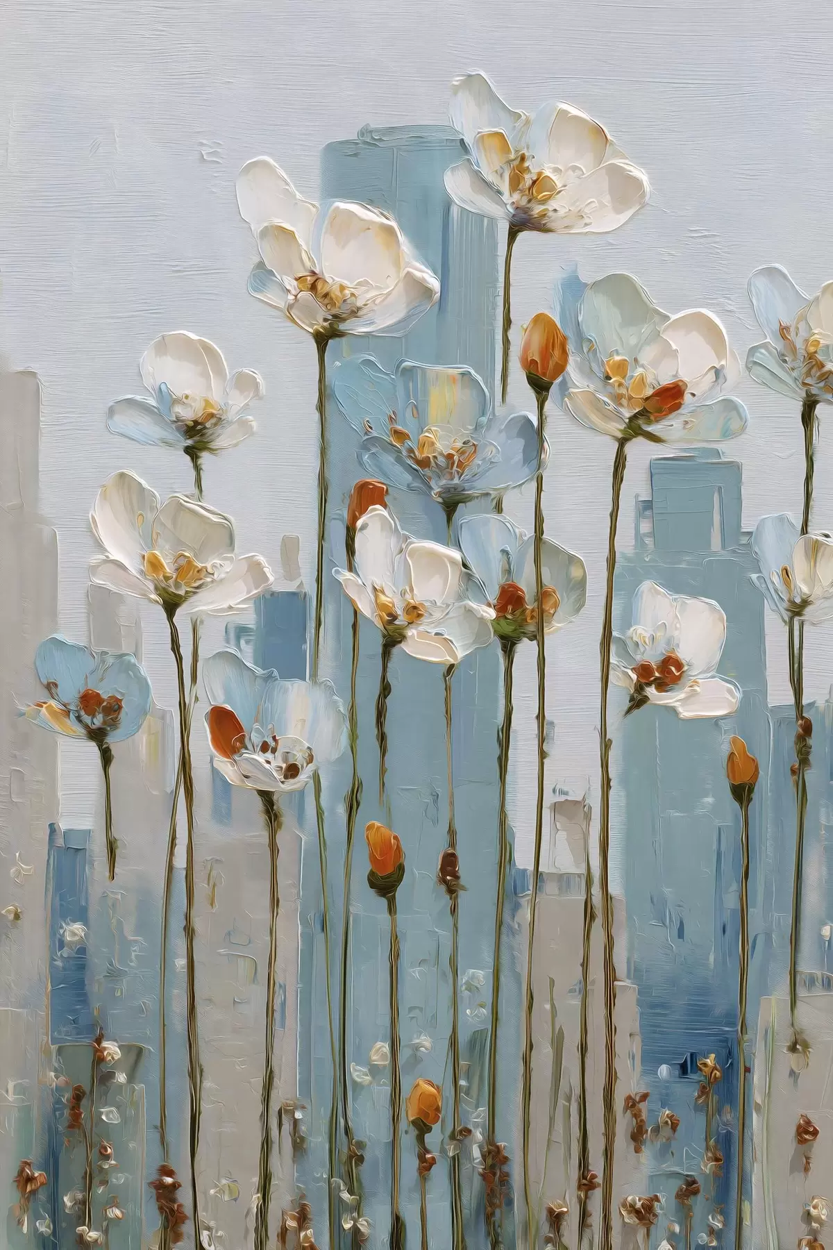Wandbilder Blumen vor einer städtischen Kulisse, im Stil eines Ölgemäldes Art. s48785