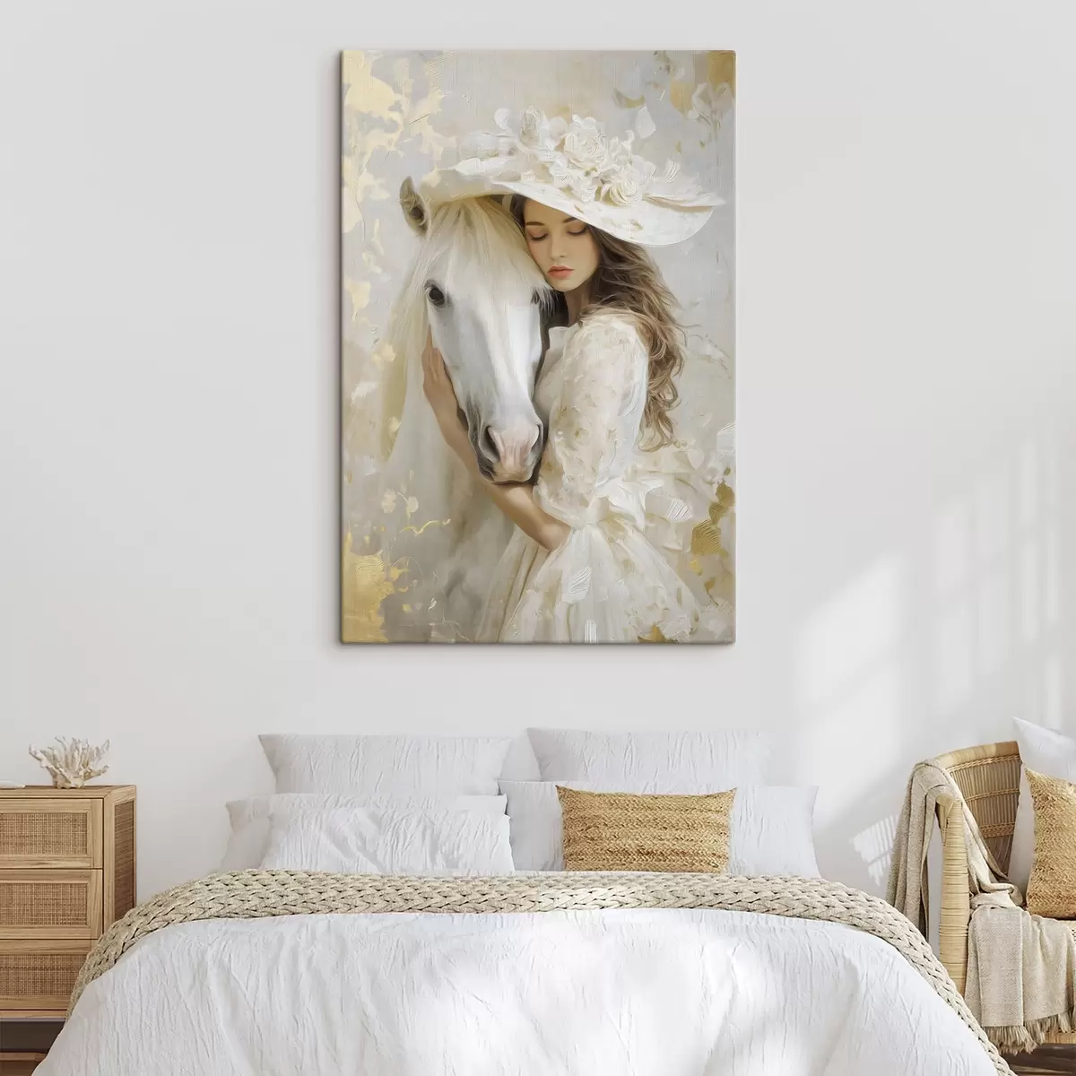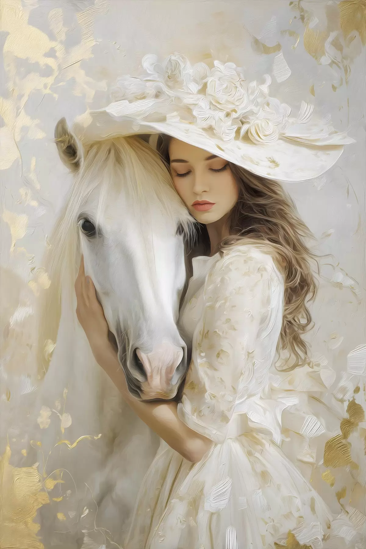 Wandbilder ein Mädchen mit einem weißen Pferd, im Ölstil gemalt s48790