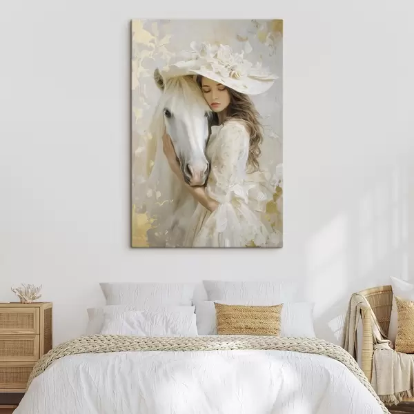 Wandbilder ein Mädchen mit einem weißen Pferd, im Ölstil gemalt Art. s48790