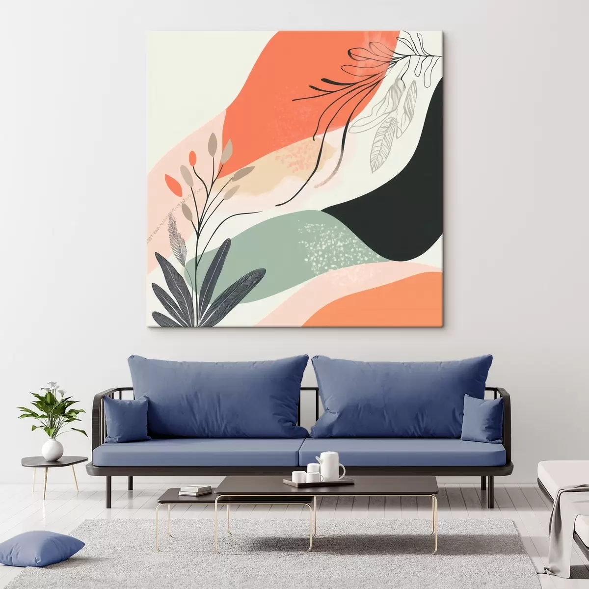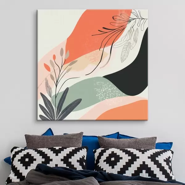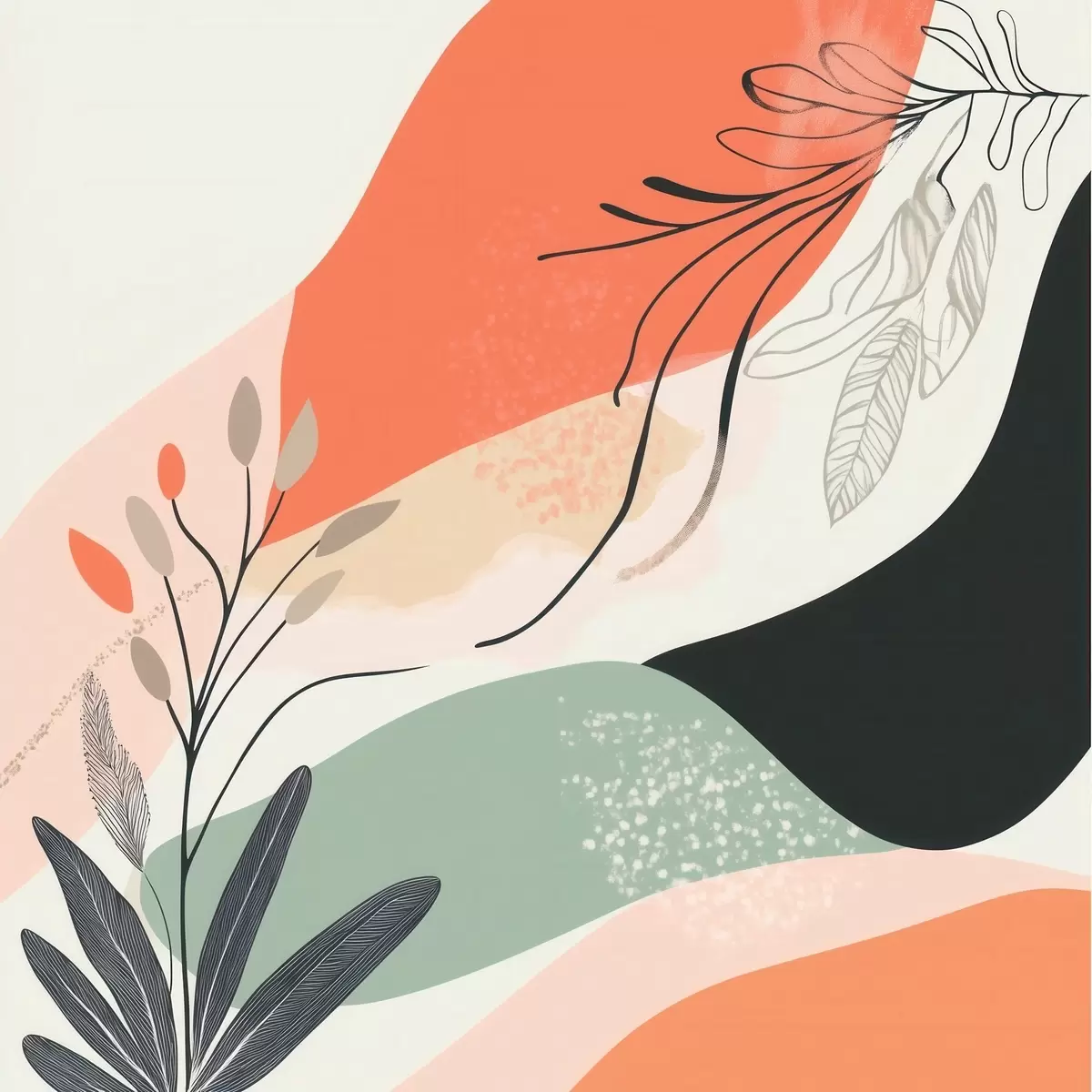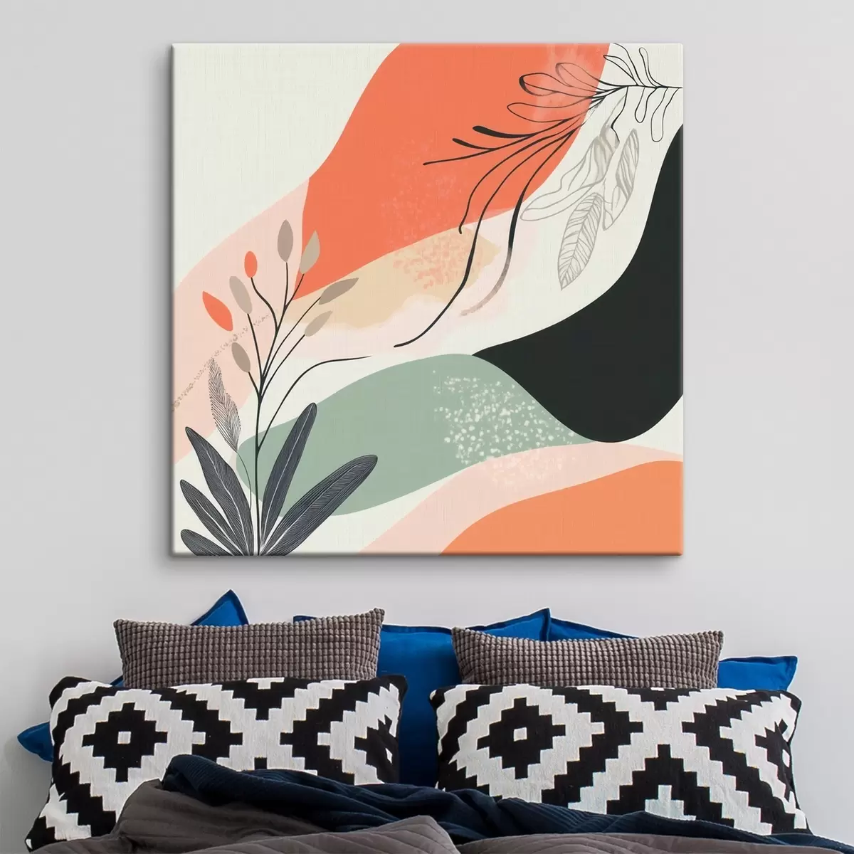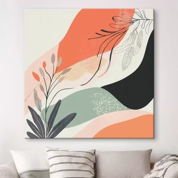 Wandbilder Stilisierte Pflanzenmotive vor einem Hintergrund aus Aquarellflecken Art. s48839