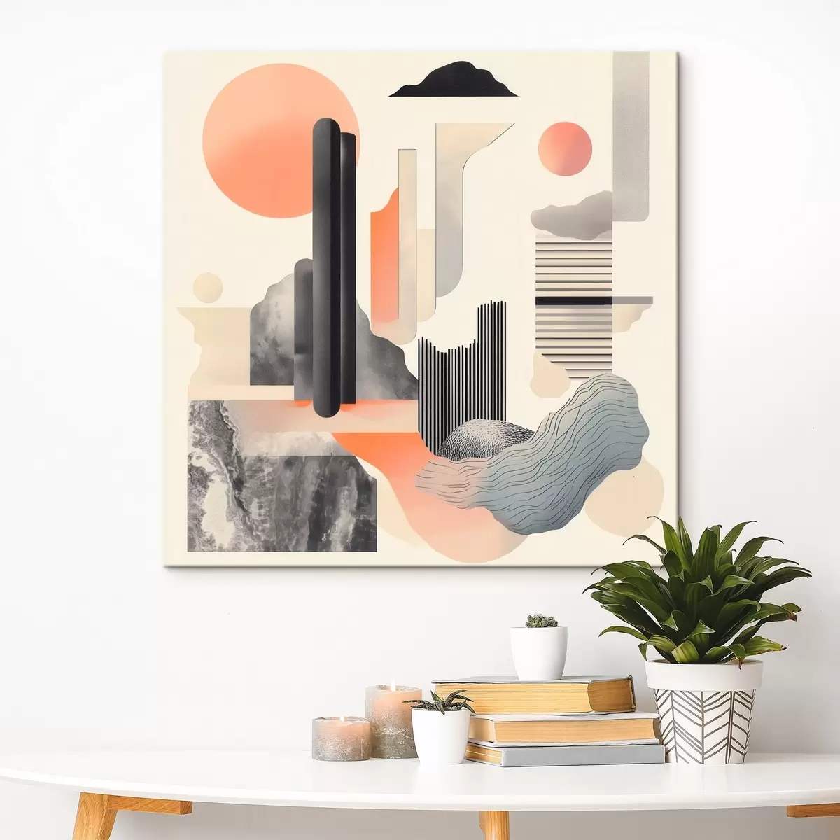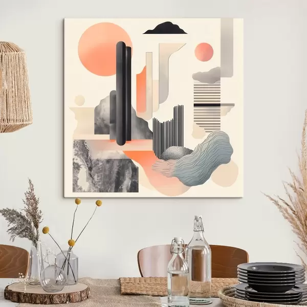 Wandbilder Geometrische Komposition in einer pfirsich-grauen Farbpalette im zeitgenössischen Malstil Art. s48841