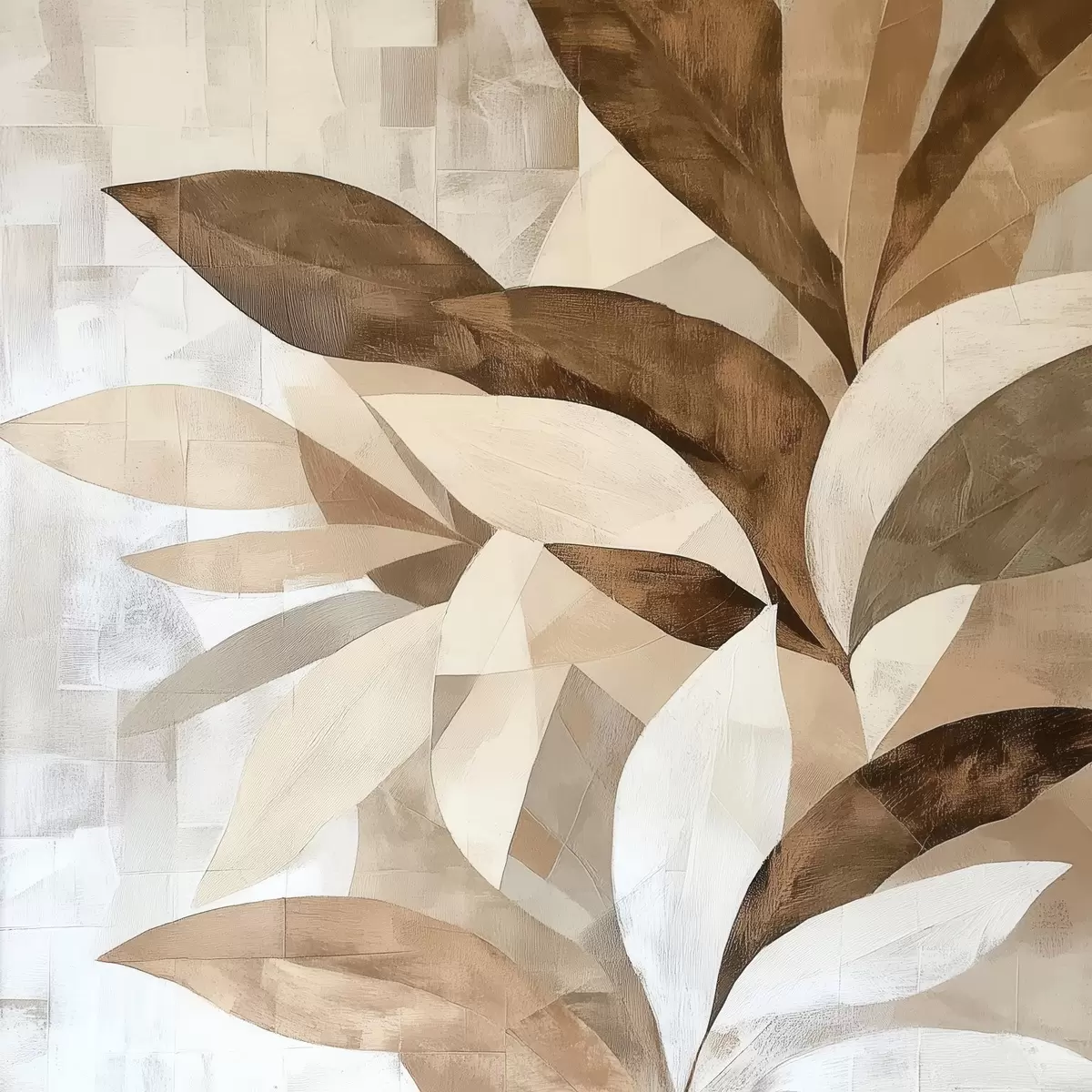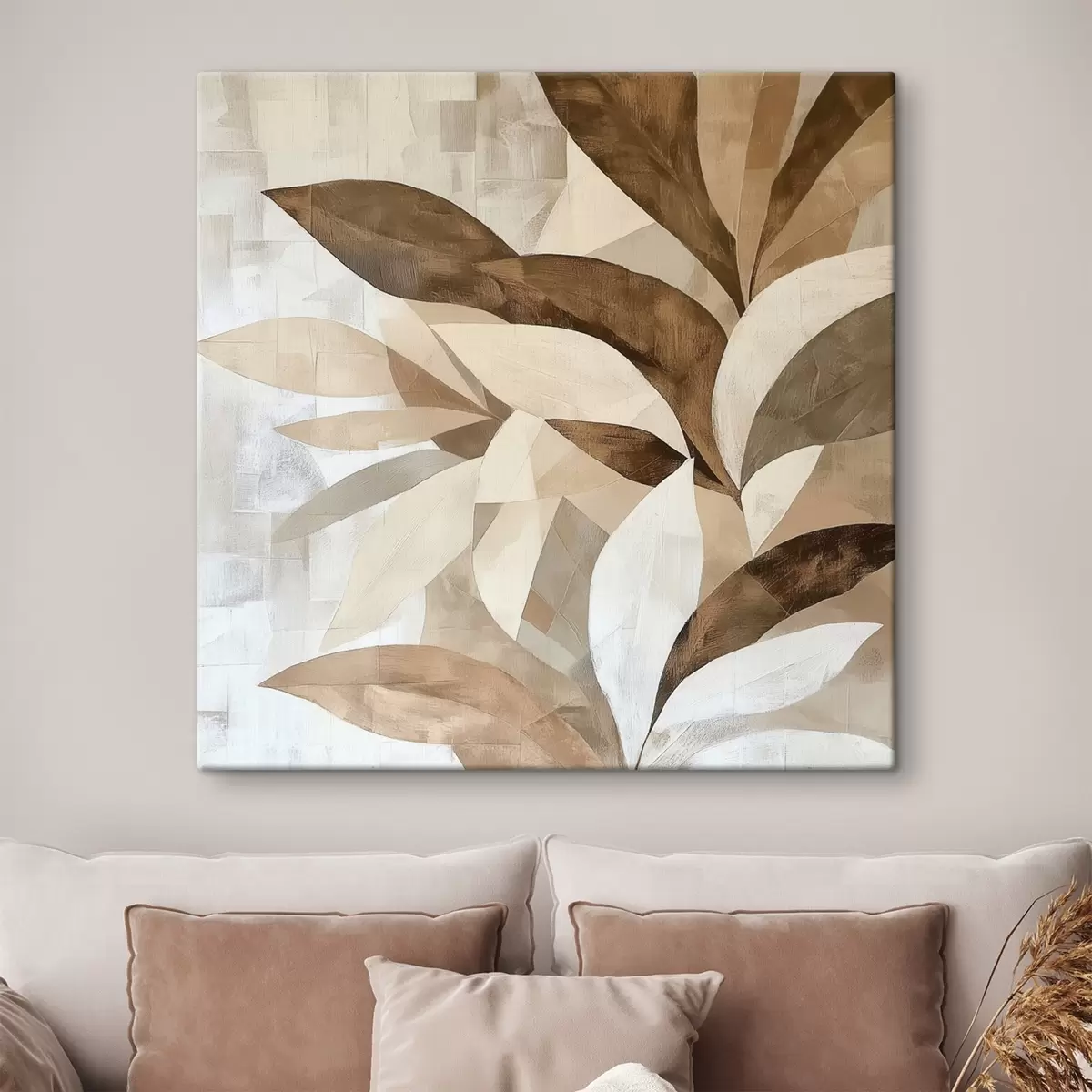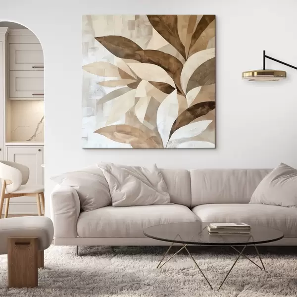 Wandbilder Abstrakte Blumenkomposition mit großen Blättern in Braun- und Beigetönen Art. s48848