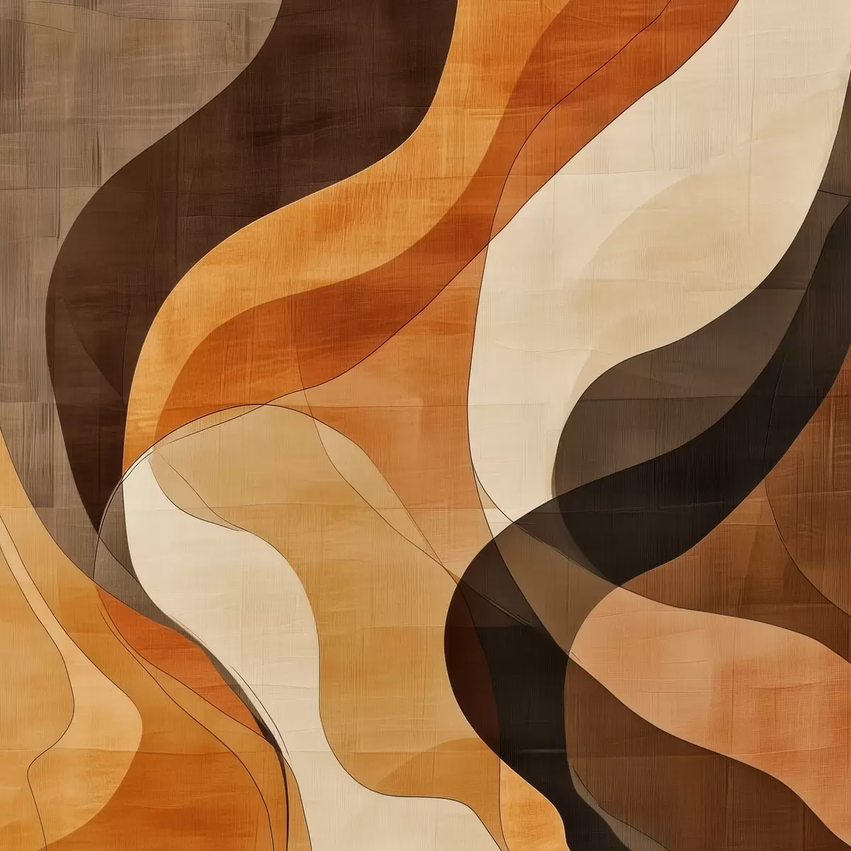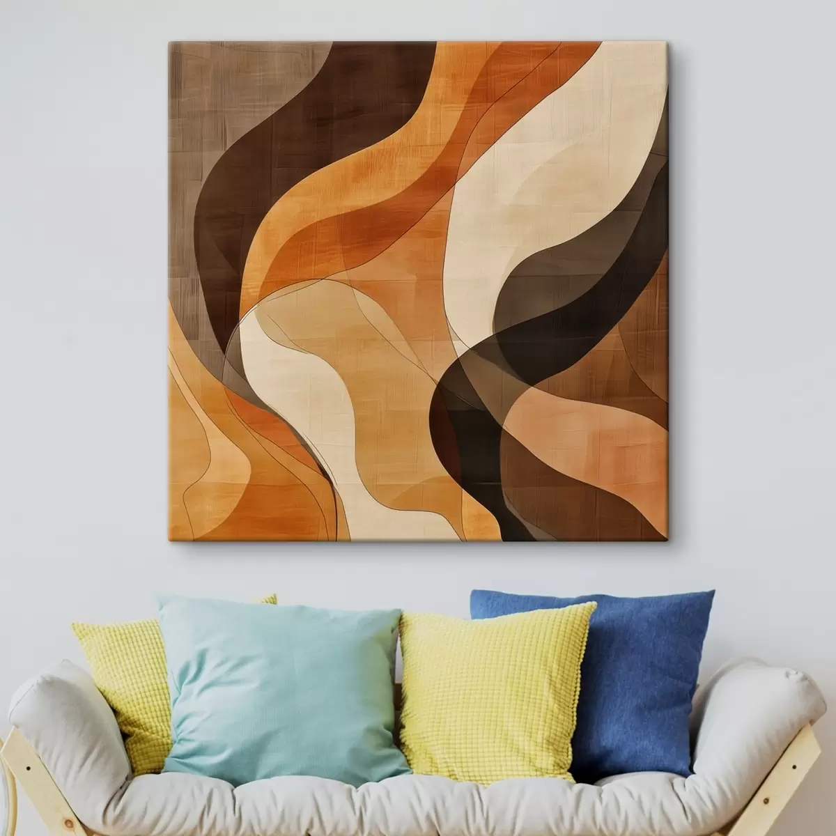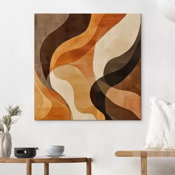 Wandbilder Abstrakte Komposition mit dynamischen Wellenlinien in Terrakotta-Brauntönen Art. s48851