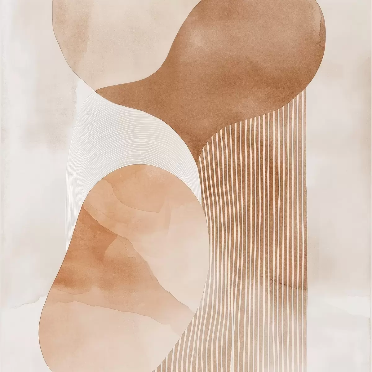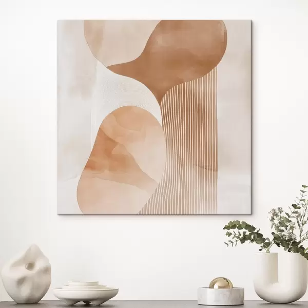 Wandbilder Dekorative Kunst in einer warmen Beige-Korallen-Farbpalette mit Aquarelleffekt Art. s48870