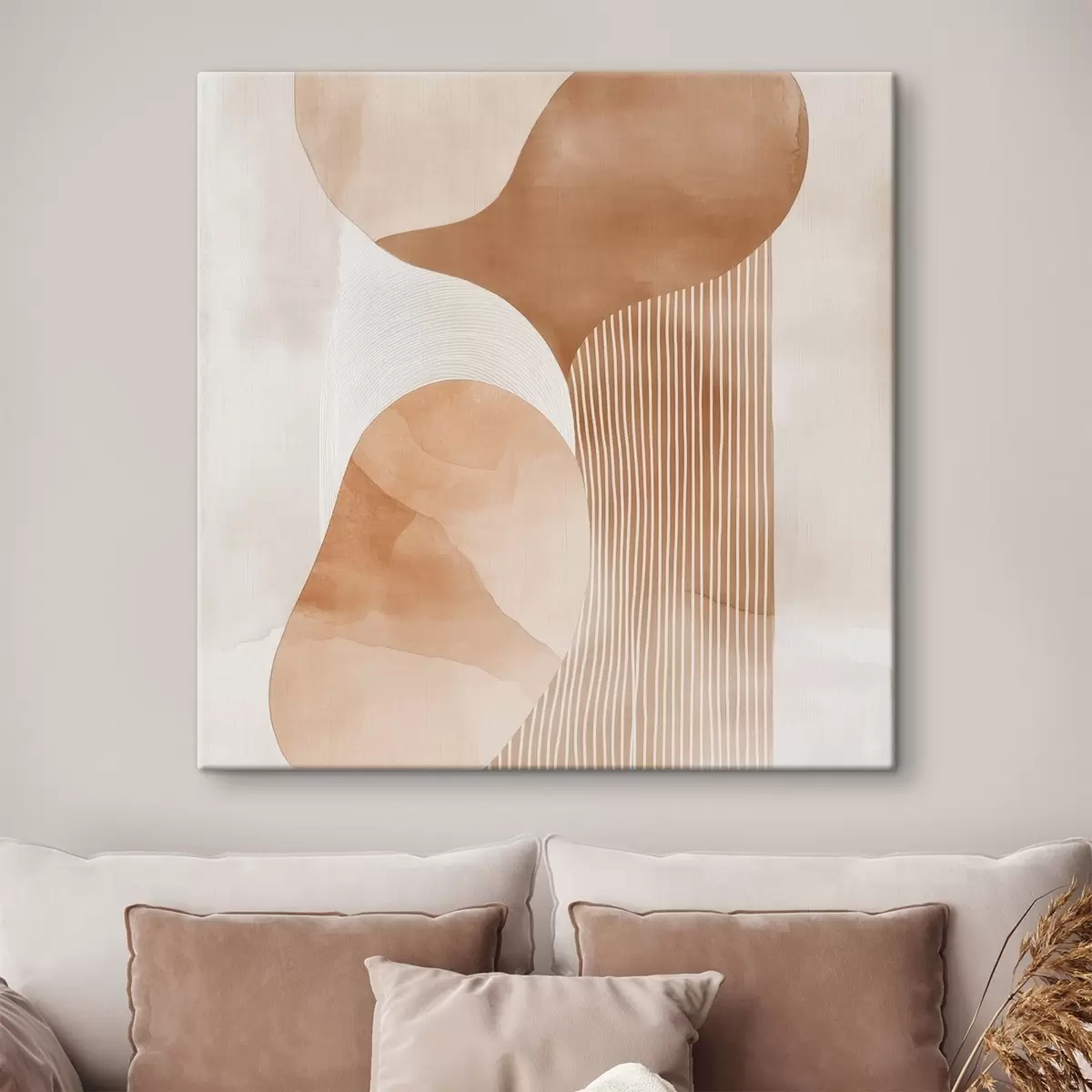 Wandbilder Dekorative Kunst in einer warmen Beige-Korallen-Farbpalette mit Aquarelleffekt s48870