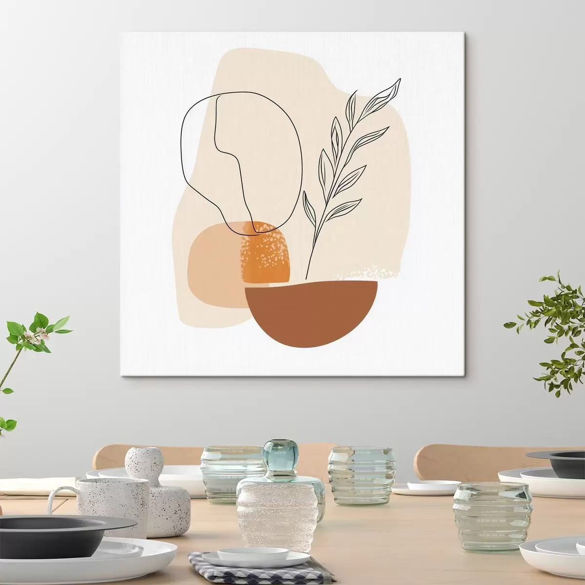 Wandbilder Stillleben mit grafischen Akzenten und pastelligen Formen im Stil der zeitgenössischen Kunst Art. s48872