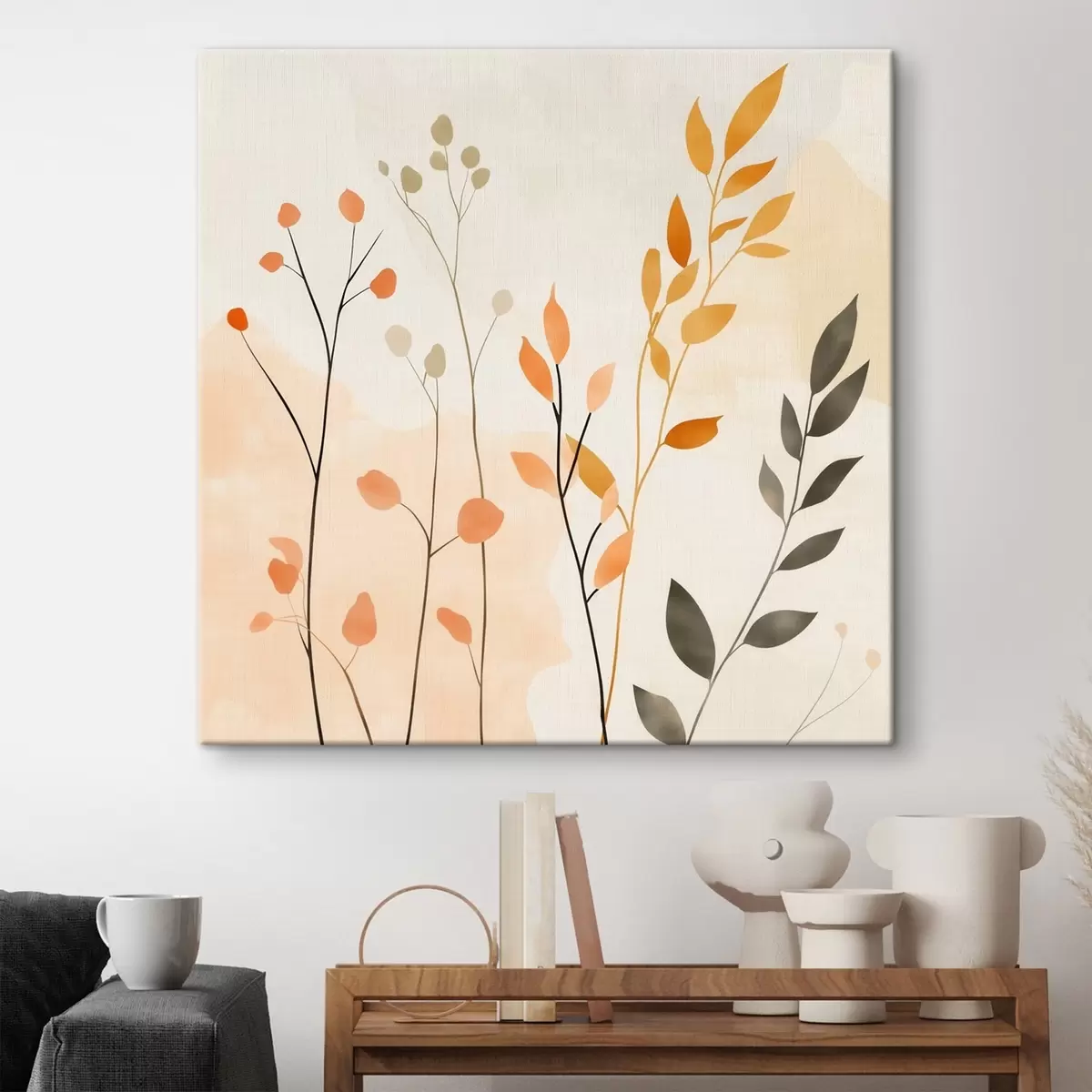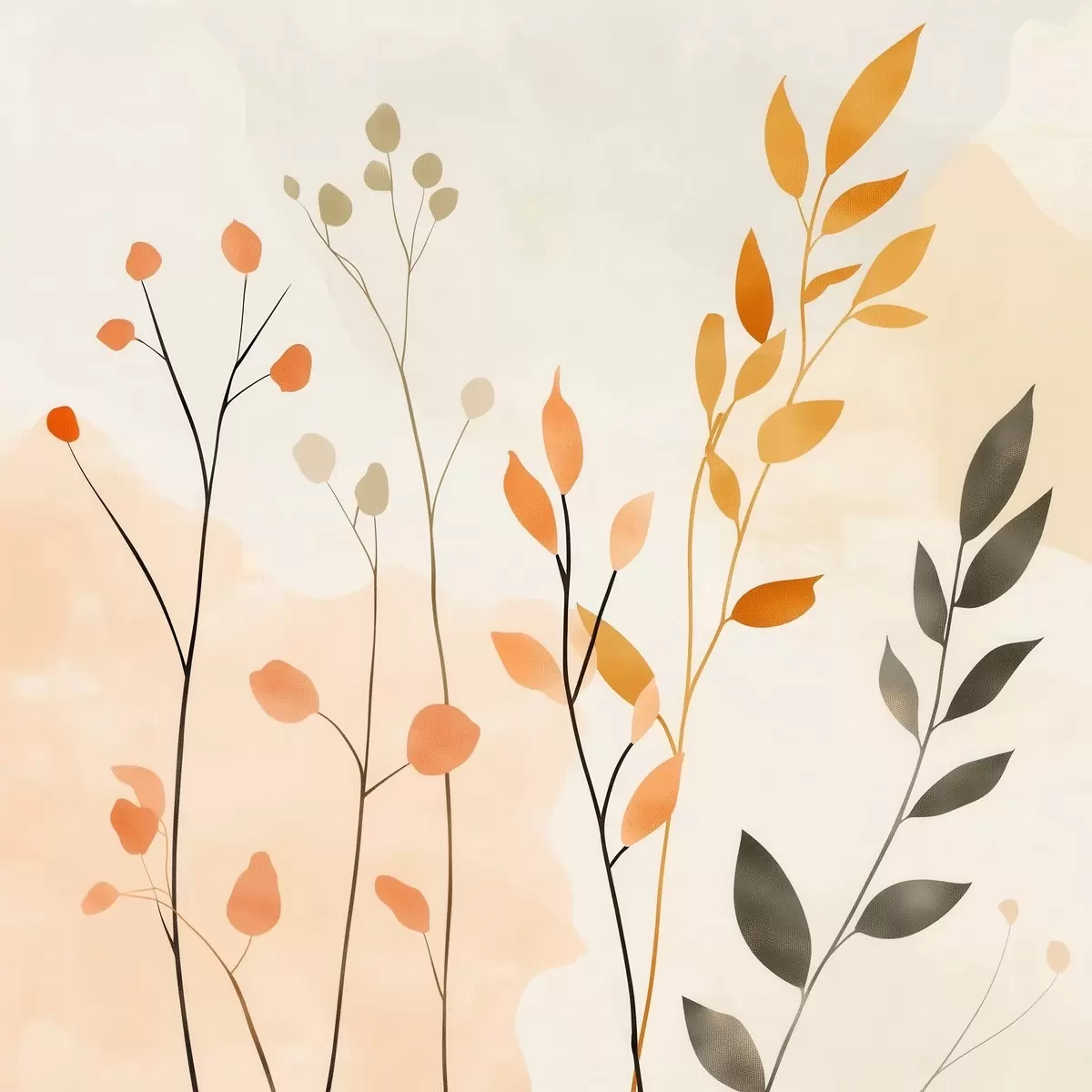 Wandbilder Pastellkomposition mit zartem Blattwerk in einem zeitgenössischen Malstil s48873