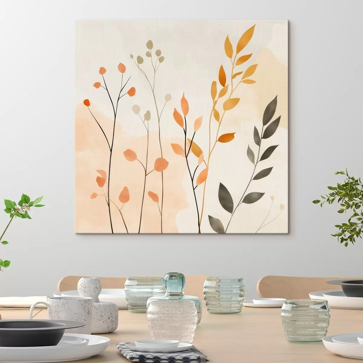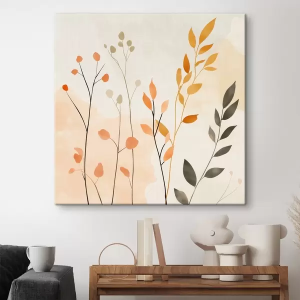 Wandbilder Pastellkomposition mit zartem Blattwerk in einem zeitgenössischen Malstil Art. s48873