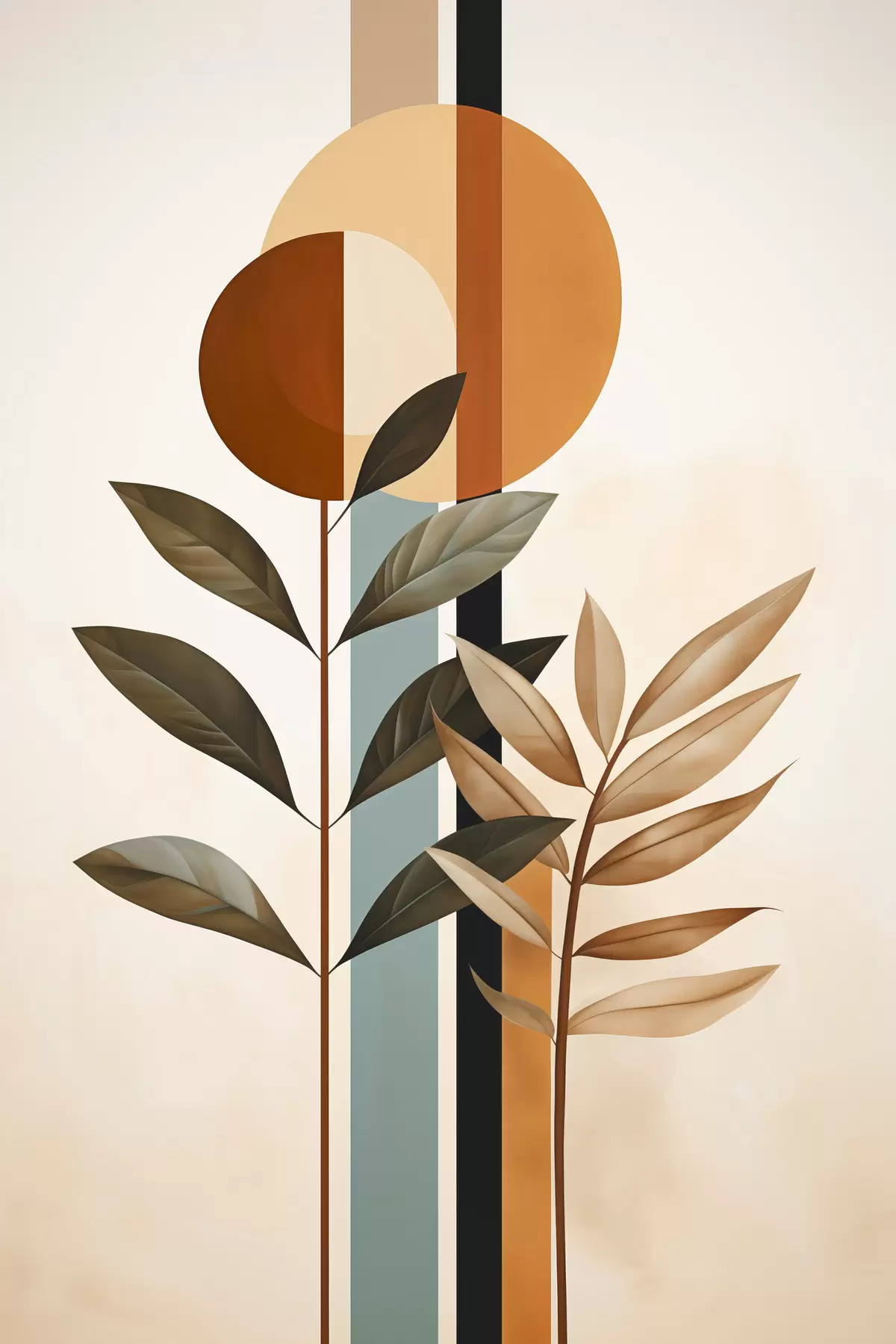 Wandbilder Abstrakte Pflanzen mit Kreisen und Linien Art. s48929