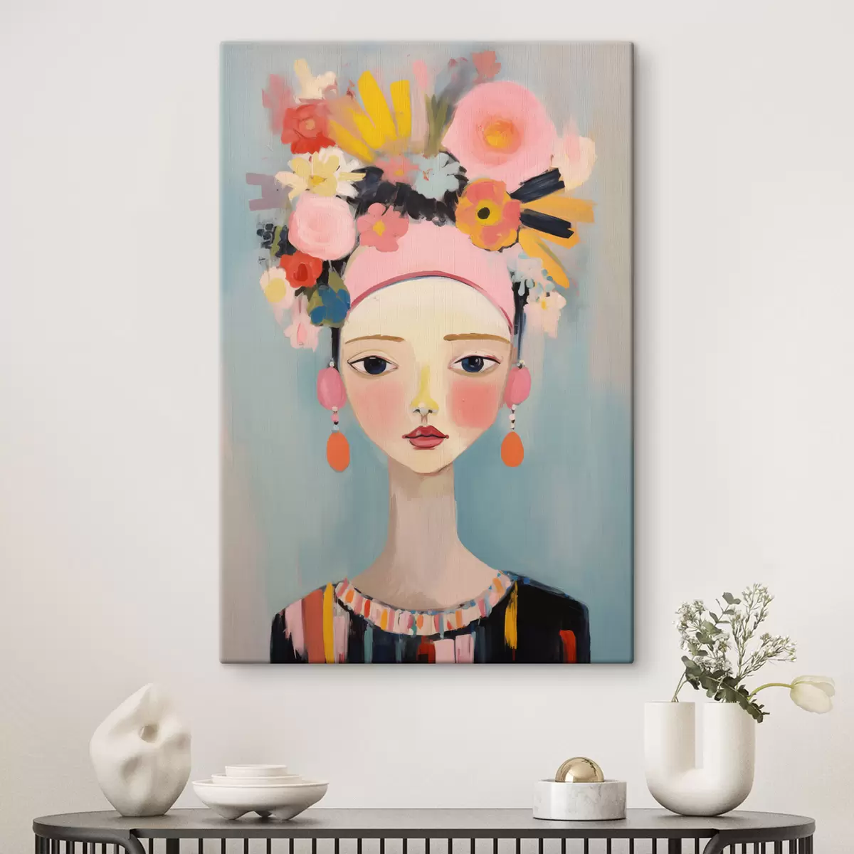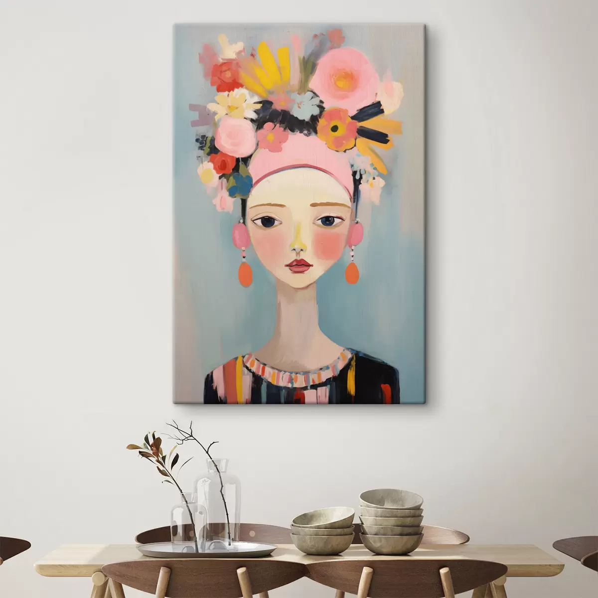Wandbilder Porträt einer Frau mit Blumen im Haar, im abstrakten Stil Art. s48936