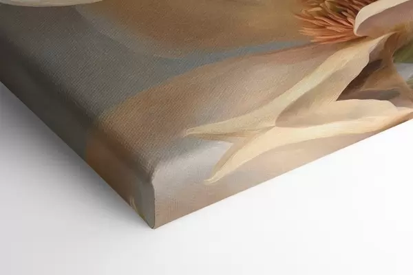 Drei Materialtypen stehen zur Verfügung: Economic Canvas - ein dichtes und haltbares Material für den Digitaldruck, identisch mit Malerleinwand, wasserfeste Oberfläche, realistische Wiedergabe von Details, mittelkörniges Material. Premium Canvas - die Textur ähnelt der einer Malerleinwand (verwobene kleine Fäden). Weiche, detaillierte Wiedergabe des Bildes auf einer matten Oberfläche. Eco-Premium - hochwertiges Gewebe aus 100% Baumwolle. Dank der natürlichen Baumwollfasern ist das Material langlebig und verschleißfest. Hervorragende Farbwiedergabe und Detailtreue.