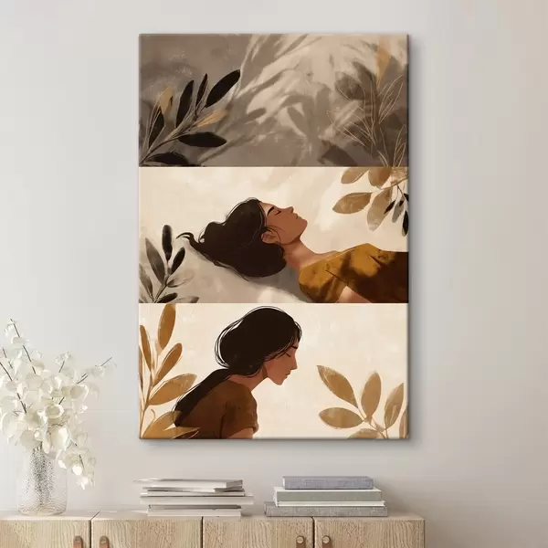 Wandbilder Dreiteiliges Gemälde „Frau mit Blättern“ s49018